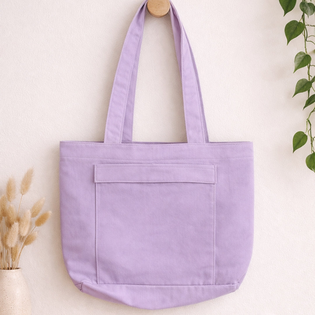 Your perfect everyday companion, this tote is crafted from durable cotton canvas and designed for effortless and everyday functionality. It features a spacious main zippered compartment, sturdy shoulder handles for easy carrying, a thoughtfully designed interior with two open pockets to hold your bottle, diary, or other essentials. Plus, a secure snap button pocket on the outside to keep your phone, keys, and valuables safe and organised. Simple, smart, and sustainably stylish.